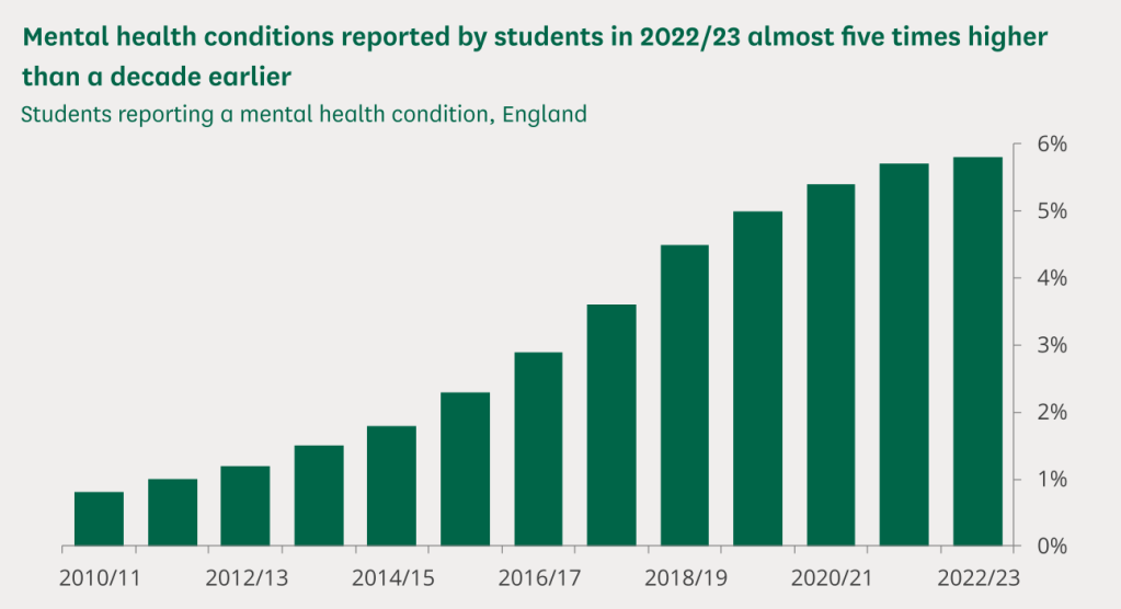 UK Parliament, 2025) Prevalence of mental health issues among university students. Available from: https://commonslibrary.parliament.uk/research-briefings/cbp-8593/ [Accessed 1 September 2025].
